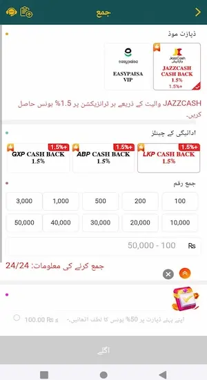 Select from options like Easypaisa, JazzCash, bank transfer or debit/credit card.